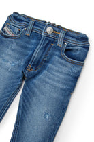 JoggJeans® D-Slinkie-B skinny fit en denim bleu moyen avec abrasions. Une coupe très ajustée mais confortable qui suit le corps en enveloppant confortablement la jambe comme un second cuir. Un jeans indispensable dans la garde-robe de tous les garçons.