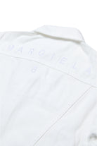 Veste en jeans à manches longues. Denim blanc d'aspect épuré. Logo Margiela 6 brodé en ton sur ton au dos. Poches passepoilées et petites poches sur le devant. Fermeture par bouton sur le devant. Couture iconique au dos. Fabriqué en 100% coton.
