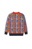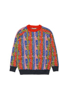 Pull à manches longues et col ras du cou en laine mélangée, doté d'une construction en jacquard allover avec des rayures abstraites et le logo allover de Marni inséré à l'intérieur du graphique. Un tricot contemporain, chaud, vivant et parfait pour ajouter une touche de couleur à la saison hivernale.