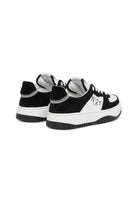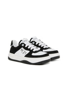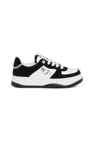 Baskets basses bicolores à lacets portant le logo N°21 Milano sur le côté. Dessus et doublure intérieure en cuir de veau. Semelle en caoutchouc thermoplastique. Fabriquées en Italie.