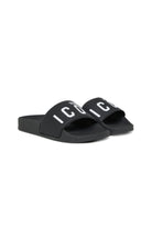 Pantoufles à glissière au design moderne. Personnalisées avec le logo ICON dans une couleur contrastante. Tige en PVC. Semelle en polyuréthane. Fabriquées en Italie.