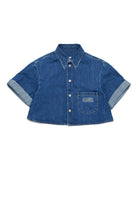 Chemise en denim bleu clair. Manches courtes retroussées. Numeric logo brodé en couleur contrastante sur la poche poitrine. Fermeture à bouton. Couture iconique au dos. Fabriquée en 100% coton.