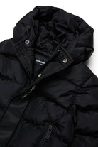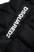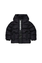 Longue veste matelassée en nylon brillant avec capuche. Le logo Dsquared2 contrasté le long de la fermeture apporte une touche iconique et immédiatement reconnaissable.