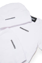 Ensemble de naissance en tricot microcôtelés. Composé d'un body à manches courtes, d'un bonnet et d'un bavoir. Tous les articles sont marqués du logo Dsquared2 et fabriqués en 100 % coton. L'ensemble est livré dans une boîte cadeau.