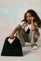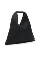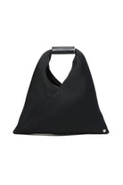 Japanese Bag en mesh format Mini. Elle se distingue par une silhouette triangulaire et la présence de boutons sur les bords permettant de modifier la forme du sac en le pliant de différentes manières, une référence évidente au code esthétique de la Maison française. La poignée comporte une partie en cuir avec un logo numérique. C’est l’accessoire le plus emblématique de MM6, repris de la collection adulte. Dimensions : 30 cm de hauteur, 32 cm de largeur, 4 cm de profondeur. Hauteur de la poignée : 6 cm.