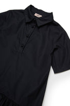 Robe courte avec logo et large volant. Le modèle présente un col classique et une patte de boutonnage partielle, confectionné en popeline de coton légère.