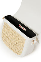 Sac avec tressage en raphia et logo. Cet accessoire allie style et fonctionnalité.