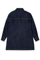 Robe mini avec logo et poche appliquée sur la poitrine. Le modèle présente une fermeture partielle par boutons et des surpiqûres contrastées.