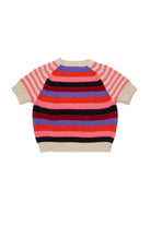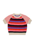 Pull ras du cou en 100% coton avec logo et motif à rayures multicolores. Modèle à manches courtes, finition en maille côtelée sur le bas, le col et les poignets.