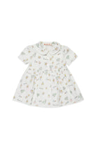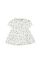 Robe courte avec logo allover et imprimé fleuri, caractérisée par un col rond et des manches courtes.