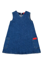 Robe courte avec logo appliqué. Un modèle sans manches en denim avec poches latérales et détail contrastant.