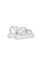 Sandales à plateforme avec ceinture. Personnalisées par une plaque métallique D2. Logo Dsquared2 en couleur contrastante sur la semelle intérieure. Dessus et doublure intérieure en cuir de veau. Semelle compensée en caoutchouc thermoplastique. Fabriquées en Italie.