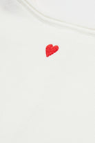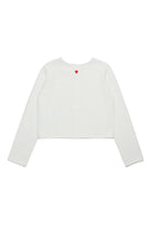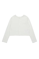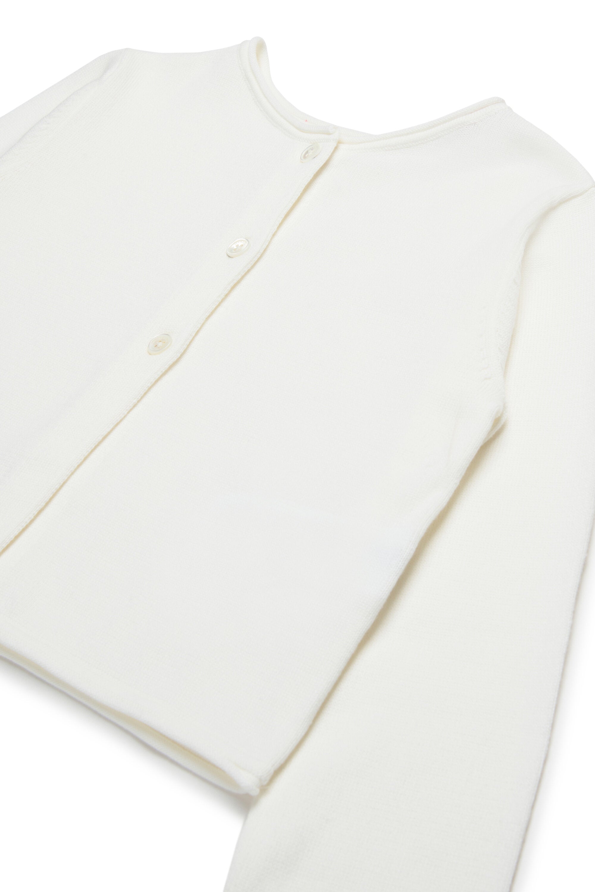 Cardigan à manches longues 100% coton. Peut également être porté comme un pull à col ras du cou. Broderie de couleur contrastée au dos. Ourlets coupés à vif. Fermeture par boutons.