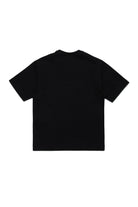 T-shirt à col rond confectionné en tissu invendu et côte au niveau du cou. Impression numérique des graphiques Save me sur le devant.