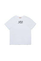 T-shirt en jersey de coton doux à manches courtes. Un vêtement simple mais distinctif grâce au logo N°21 cursif en cordon de couleur contrastée sur la poitrine.