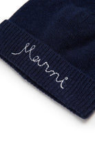 Bonnet en laine et cachemire mélangés avec le logo Marni en cursive marqué en couleur contrastante sur le devant. Un accessoire chaleureux et raffiné, parfait pour compléter votre garde-robe hivernale avec style.