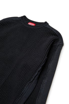 Pull en coton à manches longues et col ras du cou. L'association du sweat-shirt et de la maille côtelée crée un contraste original, souligné par la finition A-cut. La coupe oversize et l'effet used assurent un look contemporain.
