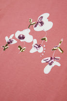 T-shirt à manches courtes en jersey de coton doux avec des motifs floraux rehaussés de paillettes colorées. Parfait pour un look décontracté avec une touche spéciale.