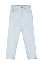Jean regular fit en denim bleu clair au design épuré et cinq poches.