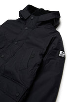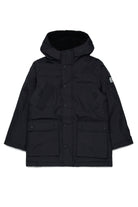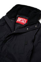 Veste rembourrée longue en nylon avec patch Diesel sur l'épaule. Rembourrage en faux duvet avec capuche. Fermeture zippée dissimulée sur le devant, quatre poches sur le devant.