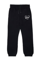 Pantalon en molleton avec logo et cœur imprimés. Le modèle présente une taille à cordon de serrage et un bas de jambe côtelé.