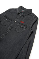 Chemise à manches longues en denim noir léger. Fermeture à boutons. Poches sur la poitrine. Comporte le logo ICON Oval D brodé en couleur contrastante sur le côté cœur à l'avant. Fabriquée en 100 % coton.