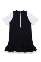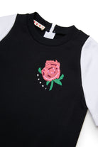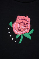 Robe mini avec logo et rose brodée sur la poitrine, ornée d’applications de paillettes et d’un volant à la base.
