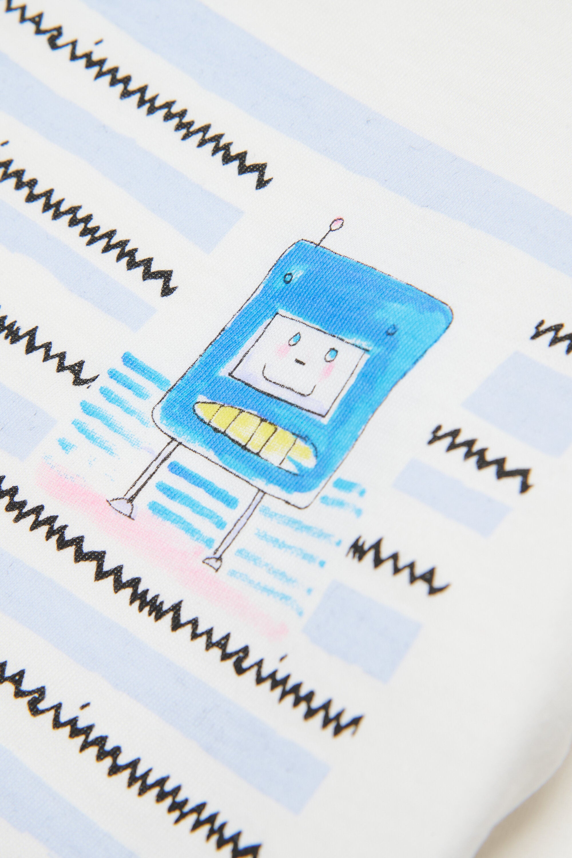 T-shirt à manches longues en jersey de coton doux avec des graphismes Galaxy sur le thème des robots sur la poitrine avec un logo en cursive intégré à l'imprimé. Parfait pour un look vif et enjoué.