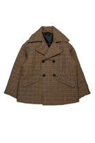Manteau peacoat en Harris Tweed à double boutonnage, rembourré avec un col en Melton. Les bandes latérales en ruban et les passepoils contrastés sur les manches ajoutent un détail moderne. Un classique réinterprété, parfait pour les événements et les occasions formelles.