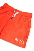 Costume boxer en nylon. Longueur midi. Cordon de serrage à la taille. Logo institutionnel N°21 de couleur contrastée sur le devant. Slip intérieur en maille. Poche arrière.