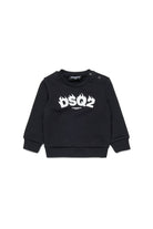 Felpa girocollo con logo DSQ2 sul petto, caratterizzata da fondo e polsini a costine
