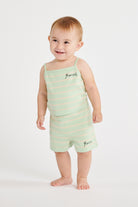 Canotta con logo e lavorazione a righe, realizzata in 100% cotone. Il modello si distingue per le spalline sottili e la texture leggera.