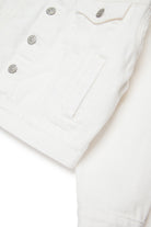 Giacca in denim con logo stampato e iconica cucitura sul retro. Design con bottoni metallici e tasche applicate sul petto.