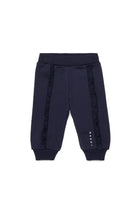 Pantaloni jogger in felpa arricchiti da un dettaglio rouches lungo la gamba e dal logo istituzionale a contrasto colore sul fondo. Un capo che unisce comfort e femminilità, perfetto per un look casual originale.