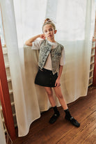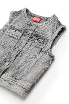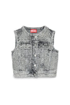 Gilet in denim effetto used con logo. Il capo è caratterizzato da cuciture a vista e fondo sfrangiato per un look deciso.