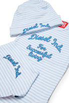 Set neonato in 100% cotone con logo, perfetto come idea regalo. Include body a manica corta, bavaglino e berettino abbinati in fantasia rigata e caratterizzati dal logo frontale.