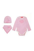 Set nascita in jersey stretch con body, berretto e bavaglino coordinati. Il kit viene fornito all'interno di un'originale gift-box.