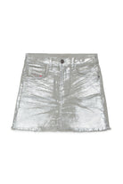 Gonna mini laminata effetto sfrangiato
