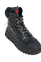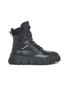 Stivali anfibi in pelle con suola chunky, lacci ed etichetta logata laterale. Perfetti per chi ama esprimere la propria personalità attraverso le scarpe, con un mix di praticità e carattere.