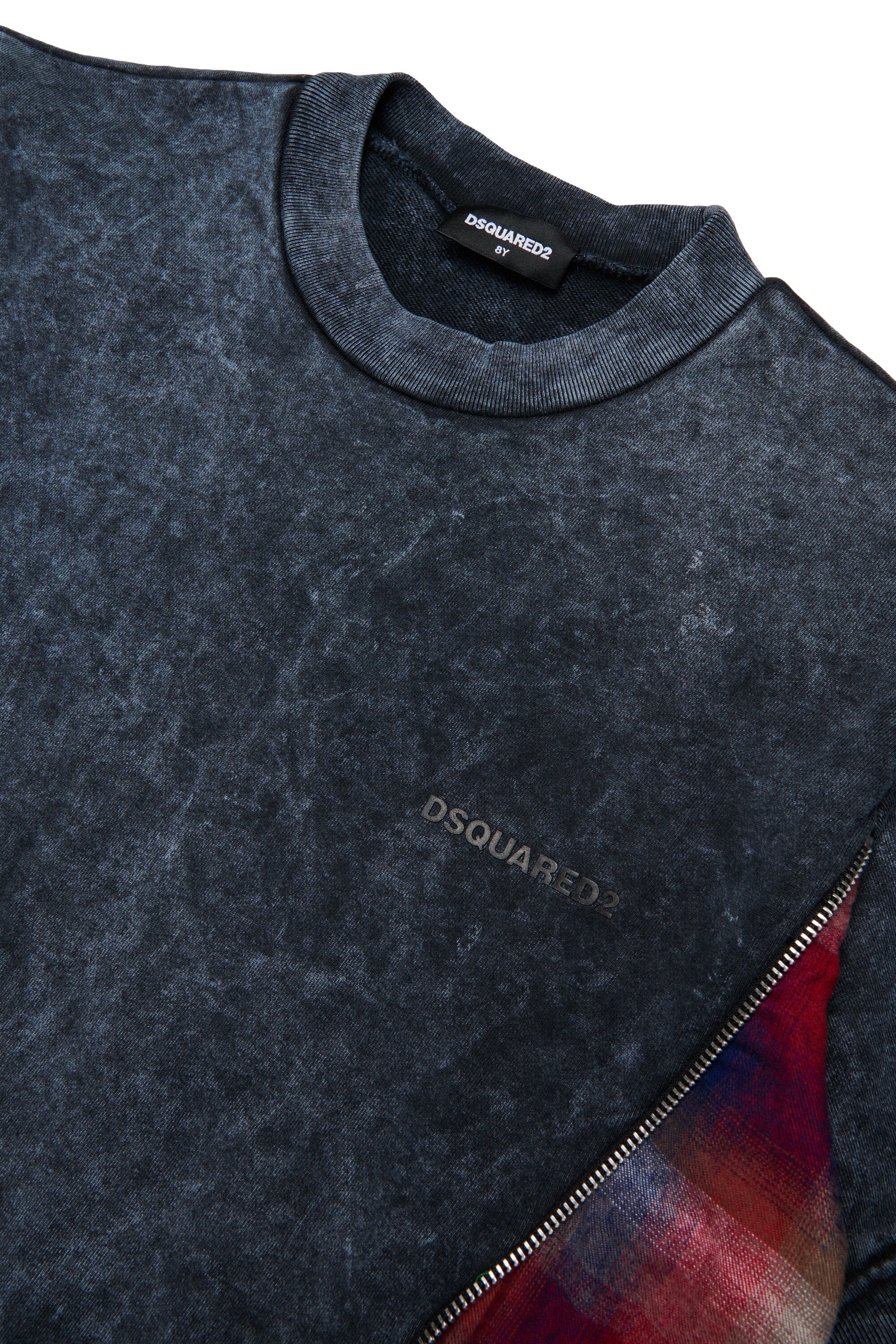 Abito maxi-felpa effetto marmorizzato con fondo e retro in flanella a quadri. Un design originale, che gioca sul contrasto dei tessuti e dettagli estetici come le zip frontali, per creare un look urbano dallo spirito ribelle.