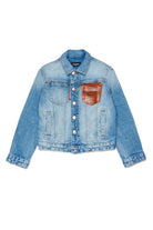 Giacca denim con logo stampato e tasca in tessuto spalmato sul petto, dall'effetto washed e con cuciture a contrasto.