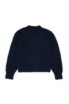 Pullover girocollo in 100% cotone caratterizzato da una lavorazione a treccia e tasca applicata con maxi logo effetto patch sul petto.