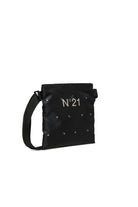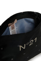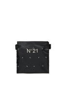 Borsa pochette in nylon con fantasia allover Palms. Logo N°21 istituzionale su un lato. Portabile a mano e cross body. Tracolla regolabile. Misure: 21 cm di altezza, 21 cm di larghezza. Luce manico: 40 cm.