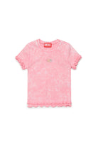 T-shirt con logo e bordo smerlato. Realizzato in cotone elasticizzato e con maniche corte dalla finitura arricciata.