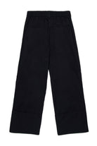 Pantaloni con logo applicato sulla gamba, caratterizzati da fondo ampio risvoltato e dettagli sartoriali.