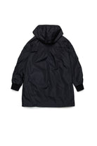 Giacca windbreaker lunga realizzata in nylon. Presenta delle arricciature che caratterizzano il capo. Logo istituzionale ricamato a contrasto colore sul davanti lato cuore. Cappuccio fisso. Chiusura a zip anteriore. Tasche frontali. Elastici sui polsini. Foderata internamente.