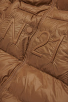 Giacca imbottita lunga con fondo asimmetrico, caratterizzata da un design moderno e funzionale. Il logo N°21, ricamato in rilievo tono su tono, appare sul davanti all'altezza delle tasche, aggiungendo un tocco elegante e discreto.
