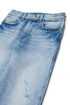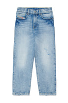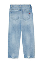 Jeans regular fit in denim chiaro con effetto wrinkles e dettagli vissuti.