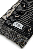 Sciarpa in lana a coste bicolor, morbida e avvolgente. Le rotture rammendate creano un effetto vissuto che arricchisce ogni look, aggiungendo un tocco di carattere e stile al guardaroba.