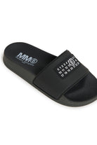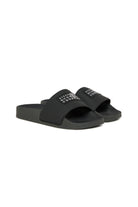 Ciabatte slide dal design moderno. Numeric logo a contrasto colore nella parte superiore. Tomaia in PVC. Suola in poliuretano. Made in Italy.